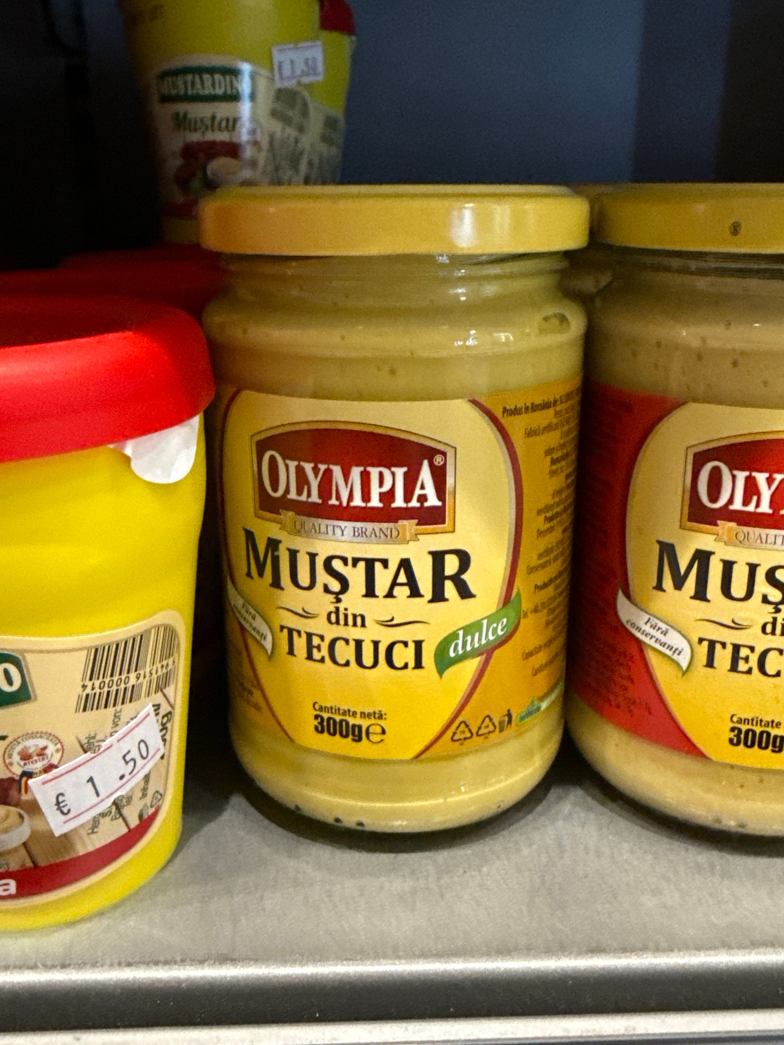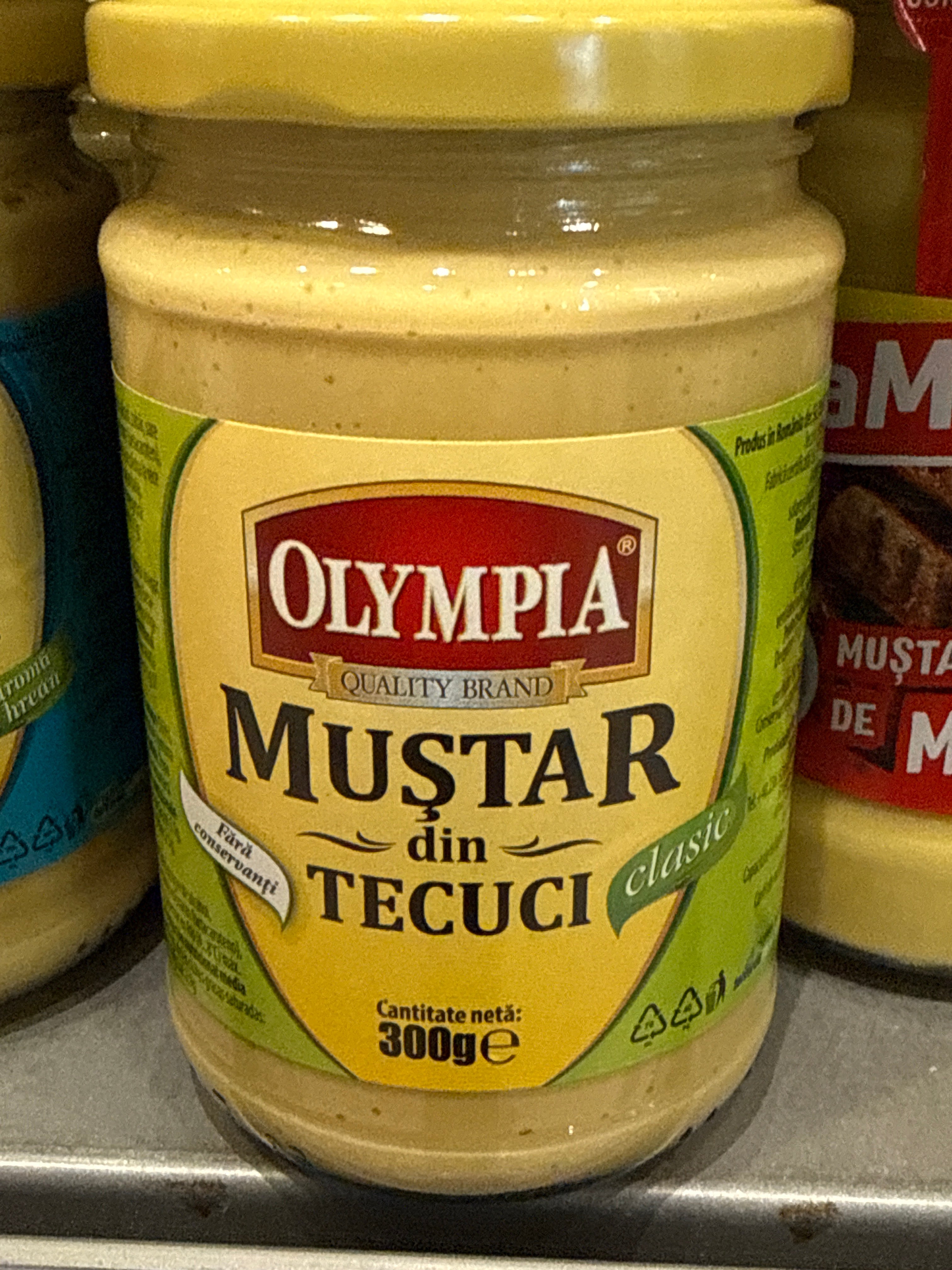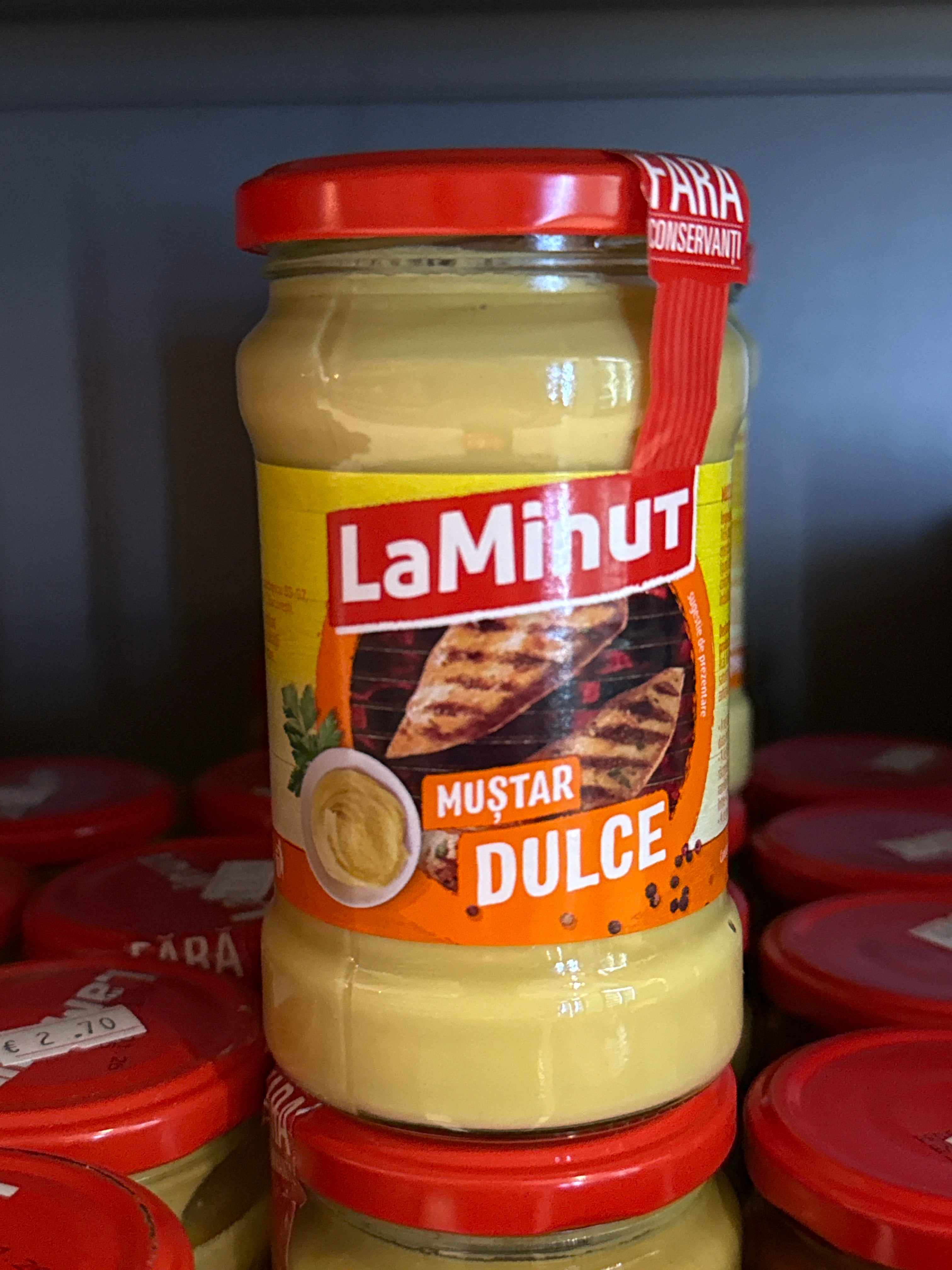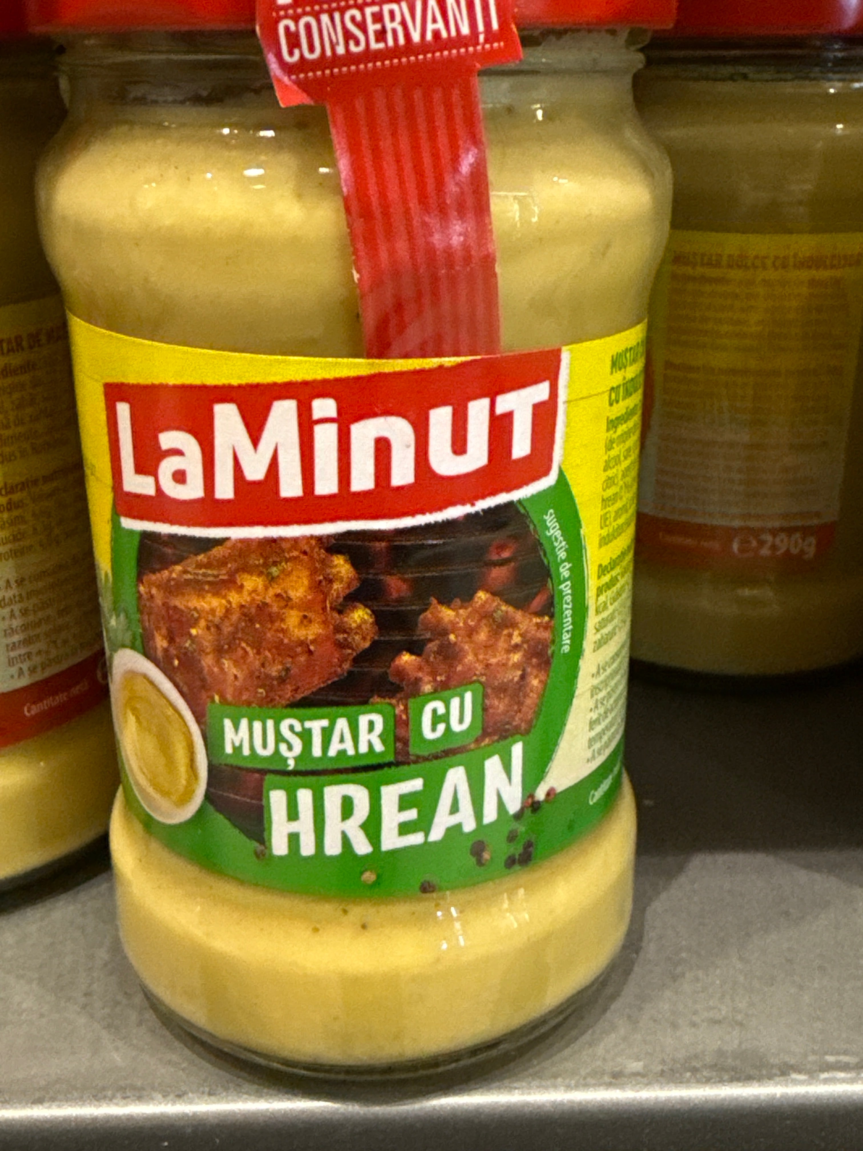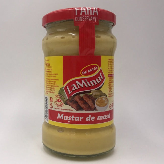 Ingrediente Apa, otet din vin, mustar (18%), zahar, sare iodata, faina de grau, amidon modificat din porumb, stabilizator/agent de ingrosare (guma xantan), colorant (curcuma, beta caroten), amestec de condimente.
