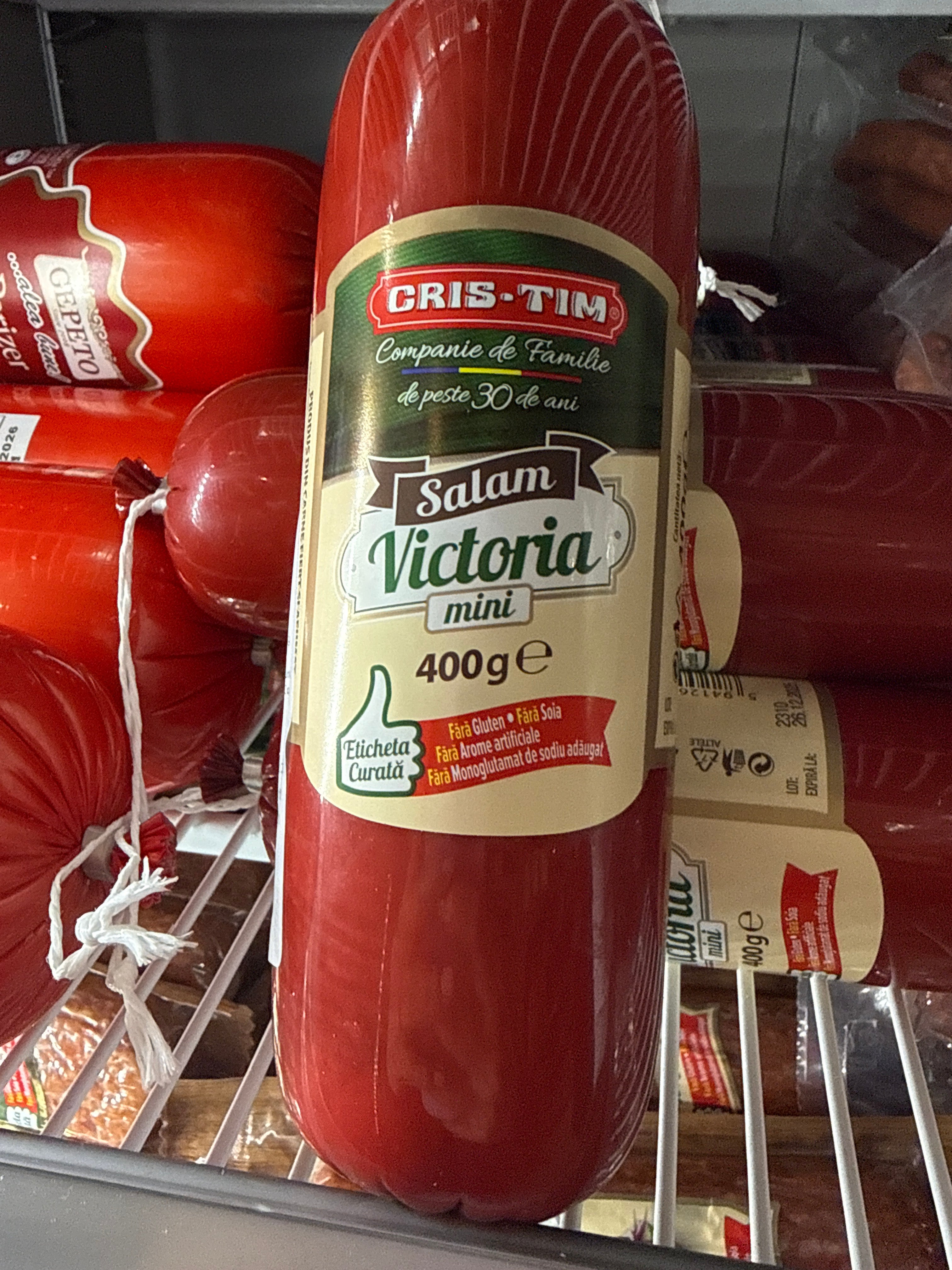 Ingrediente Pulpa de porc ( 35 % ), apa, carne de porc ( 15 % ), piele de pasare, slanina, amidon din cartofi, proteina vegetala din soia, agent de intarire ( lactat de sodiu ), sare, zaharuri (dextroza), stabilizatori ( trifosfati), faina din soia si lecitina, extracte de condimente (telina), potentiatori de aroma ( monoglutamat de sodiu, guanilat disodic, inozinat disodic ), arome, antioxidant ( eritorbat de sodiu ), agent de ingrosare ( caragenan ), condimente, conservant (nitrit de sodiu), colorant (carmine)